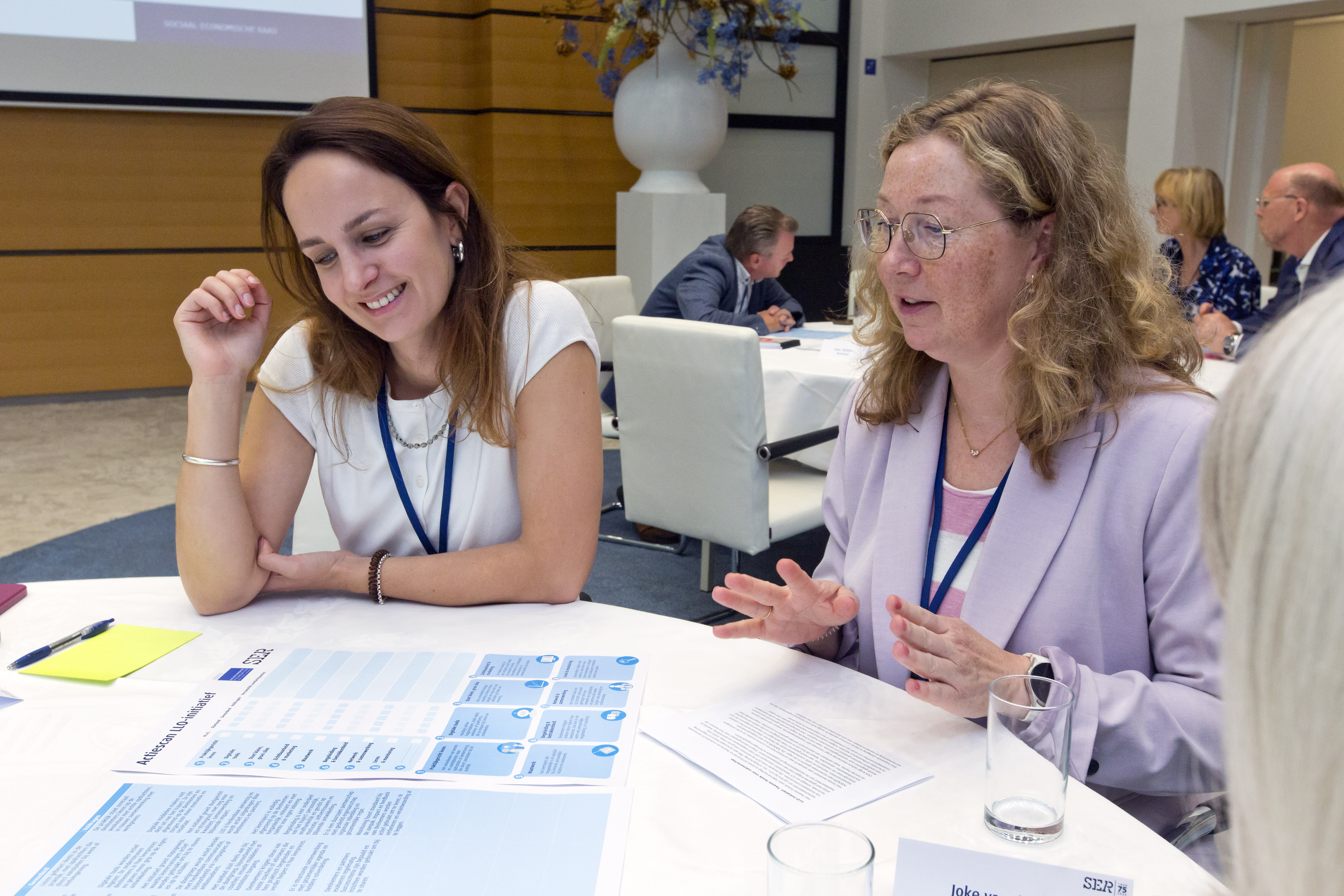 Ook in 2025 ondersteunde de SER ‘grote’ vennootschappen bij hun rapportageverplichting – voortkomend uit de wet ‘ingroeiquotum en streefcijfers’ - en het realiseren van meer (gender)diversiteit in de (sub)top. Ruim 5.800 bedrijven ontvingen een uitnodiging van de staatssecretaris van OCW en de voorzitter van de SER om te rapporteren in het SER Diversiteitsportaal. De SER ondersteunt deze bedrijven door het organiseren van sectorale dialoogbijeenkomsten, het (door)ontwikkelen van hulpmiddelen zoals de rapportage toolbox en het verspreiden van inspirerende voorbeelden en verhalen. In 2025 organiseerde de SER onder andere een werkbezoek aan Stedin dat diversiteit en inclusie succesvol doorvoert in de bedrijfsvoering. Daarnaast beantwoorde de SER meer dan 2.500 vragen via de helpdesk van het Diversiteitsportaal.